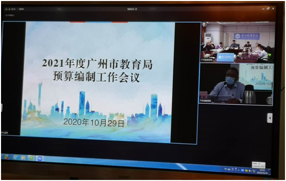 为做好部门预算编制工作,提高预算编制质量和效率,10月29日下午,广州市教育局党组成员、副局长谷忠鹏主持召开2021年度预算编制工作视频会议。在行政楼A五楼会议室,我校副校长唐强荣率财务处处长章祥敏、财务处副处长张艳清、基建处副处长李亚云及财务处预算科全体工作人员参加了会议。